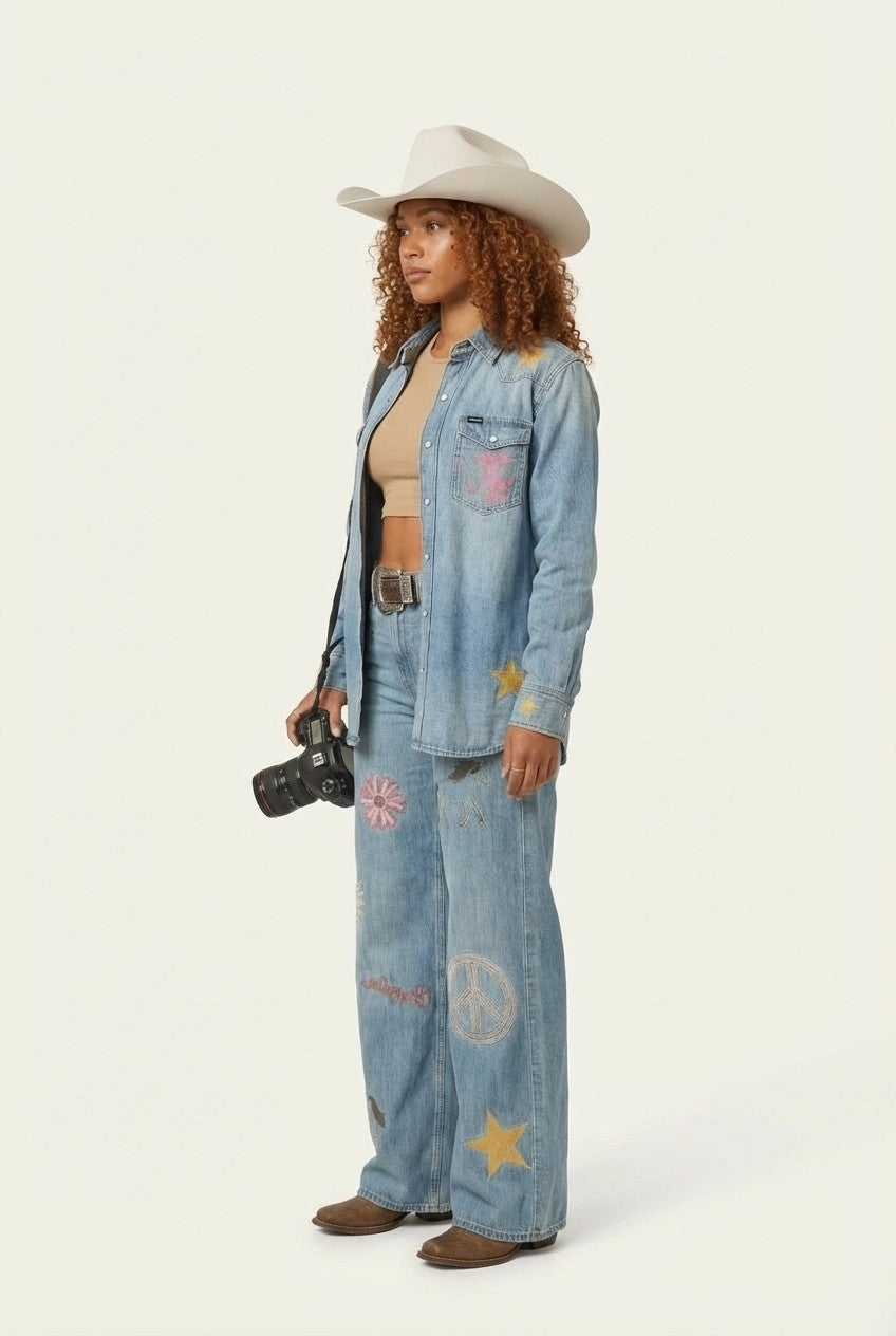 Save $139.10Western Embroidered Denim Set – Vintage Cowboy Shirt & Wide-Leg Jeans$99.90 USD $239.00 USD -
