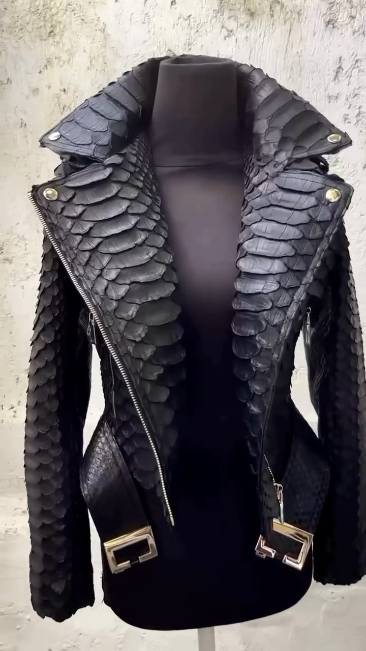 Black Faux - Snakeskin Leather Biker Jacket