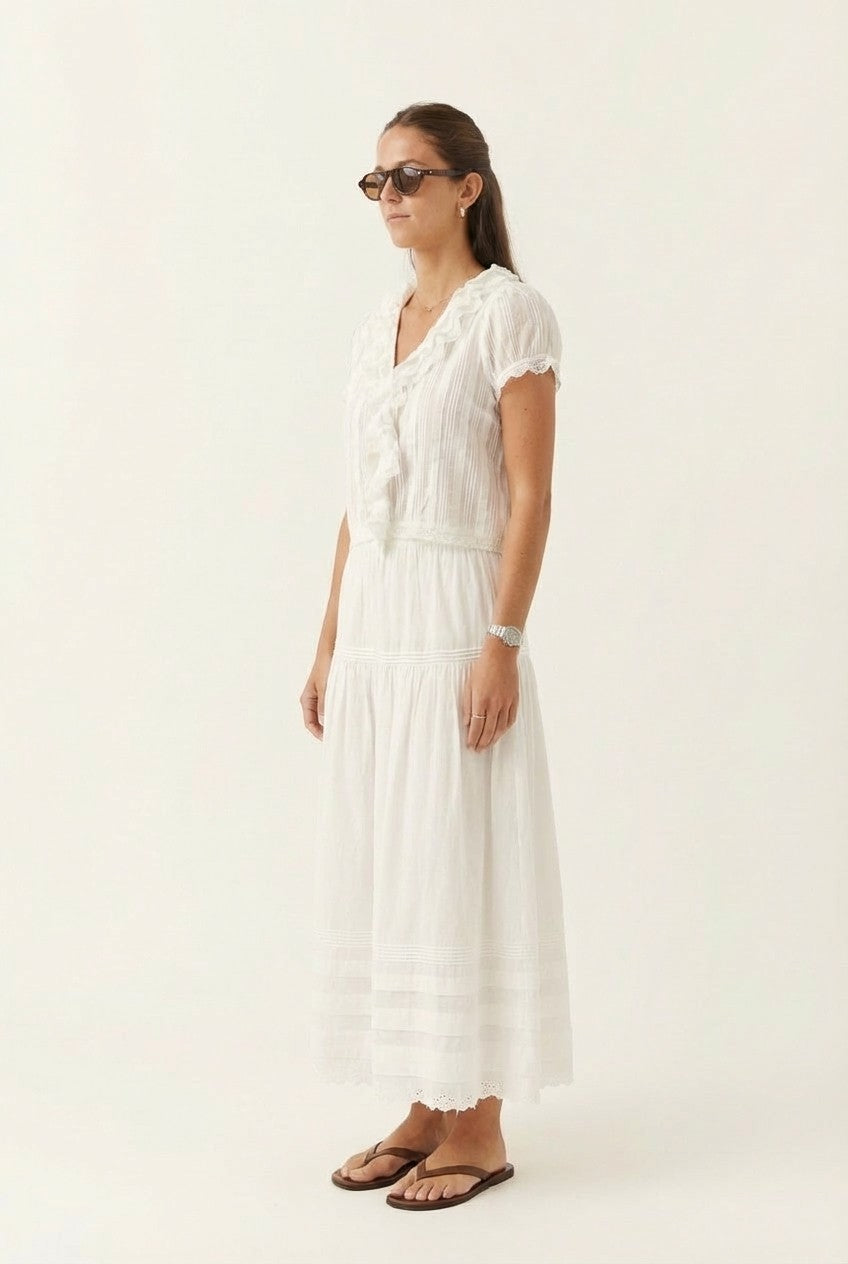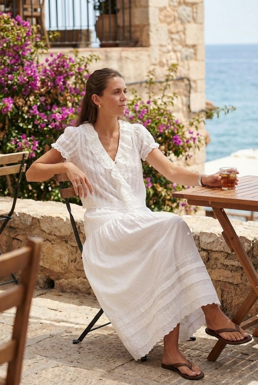 The Ivory Breeze Midi Dress captures the essence of summer simplicity with its airy silhouette and soft texture, perfect for sunlit days and relaxed evenings.