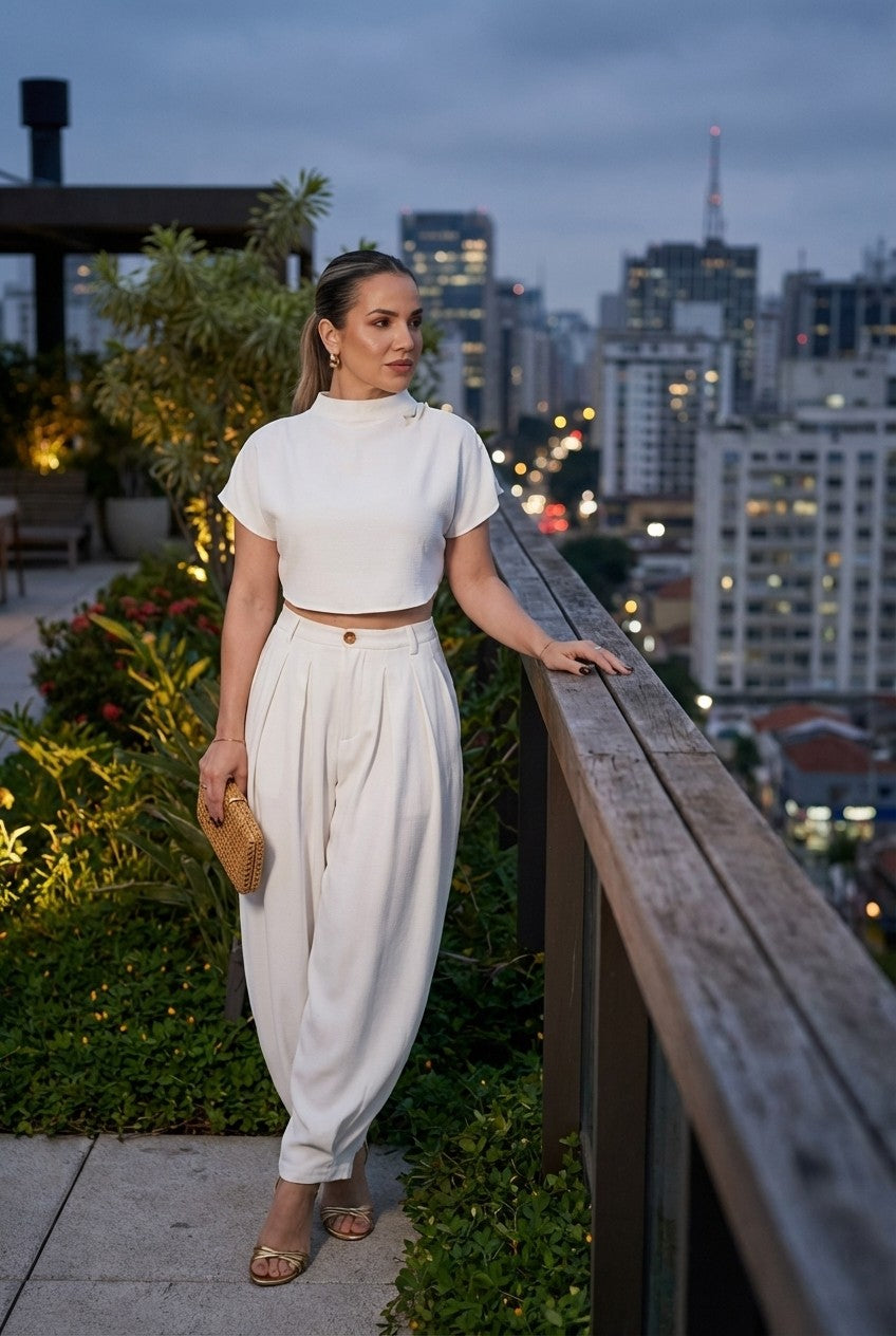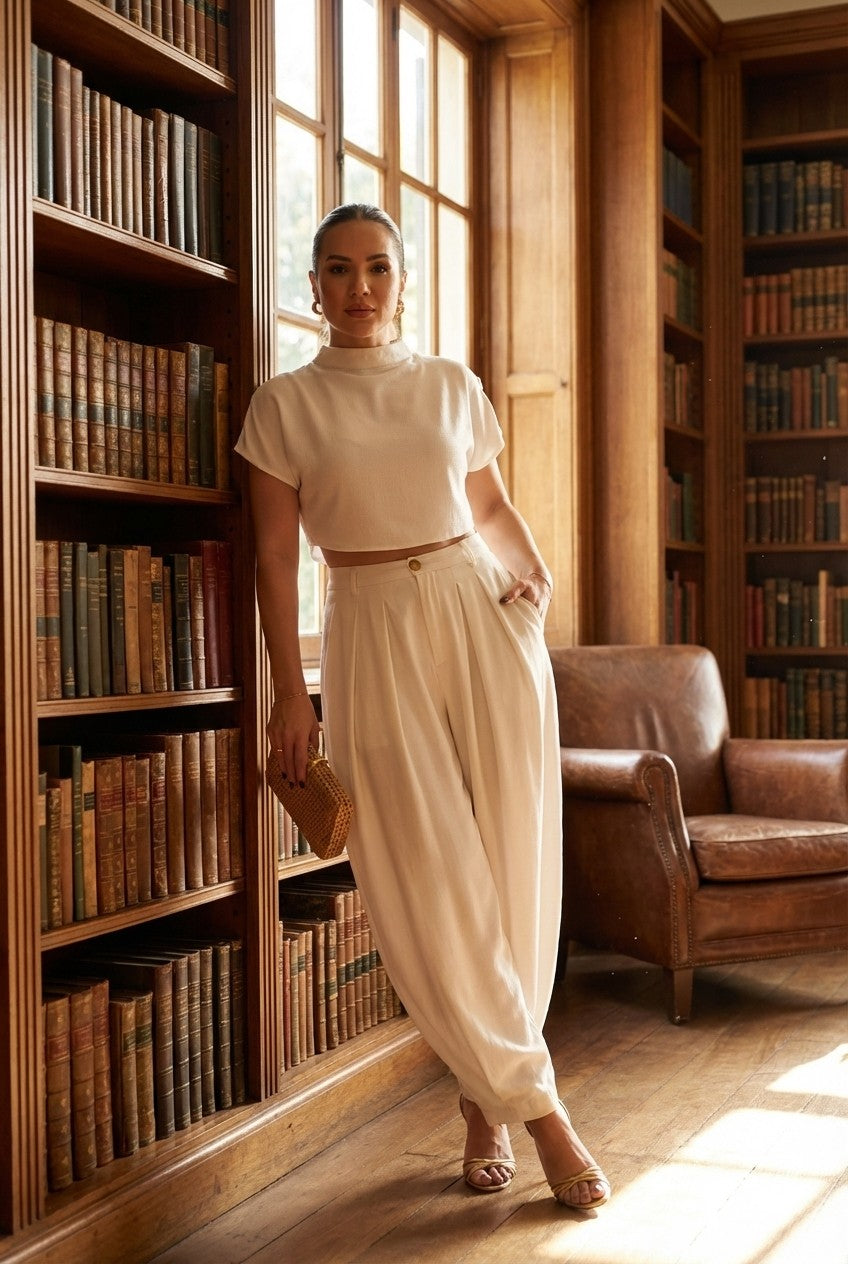 The Ivory Ease Set is designed for warm days and relaxed elegance, combining a clean silhouette with breathable comfort for a naturally elevated look.