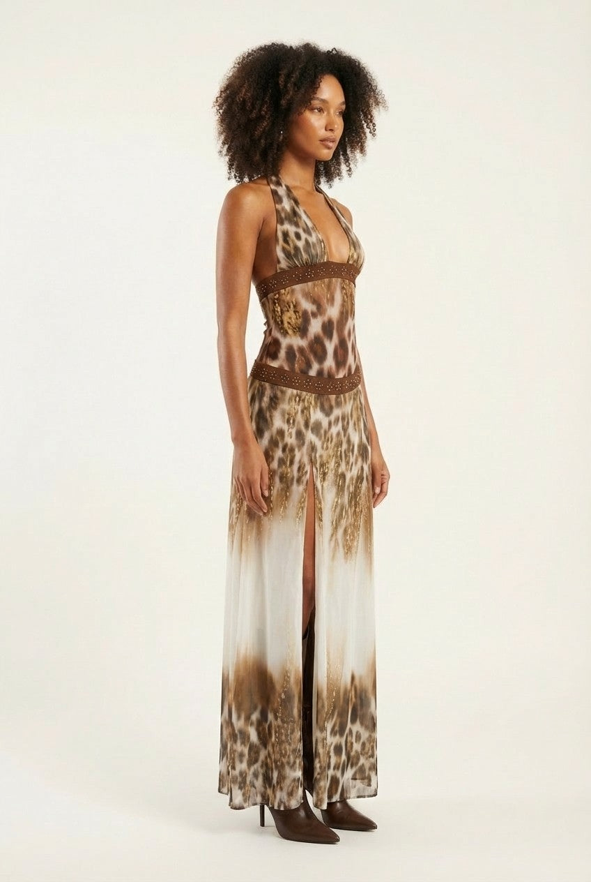 Embrace your wild side with effortless glamour. This stunning leopard print maxi dress combines a bold animal motif with a sophisticated ombré finish, creating a head-turning silhouette for your next sun-soaked getaway.